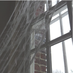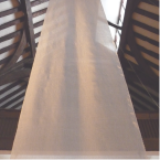 ‘Whisper’ a fine net like cloth was woven with linen, cotton and a phosphorescent yarn which reflected light, was hung from one of the Georgian paned windows, the piece was a reflection of the silence of the Church. ‘Fabricate’ in contrast to this was woven in heavy pleats using natural linen. This was woven in response to the wooden tie- beams which dominate the buildings structure. She also had a community weave, a long piece that the public were invited to weave themselves.